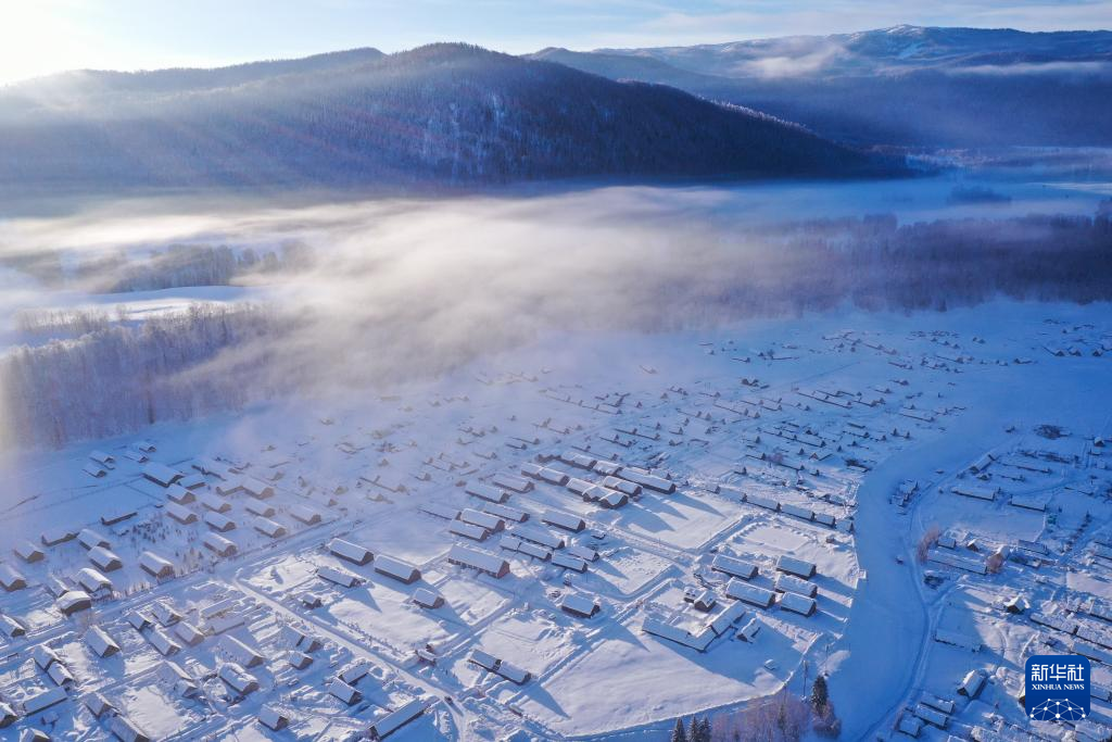 1月17日拍摄的新疆阿勒泰地区布尔津县禾木村(无人机照片)。
