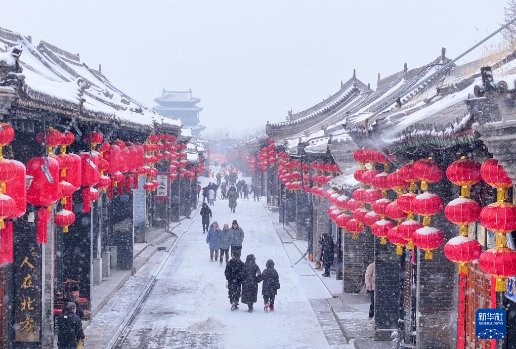 这是2月1日拍摄的雪中的山西晋中平遥古城。