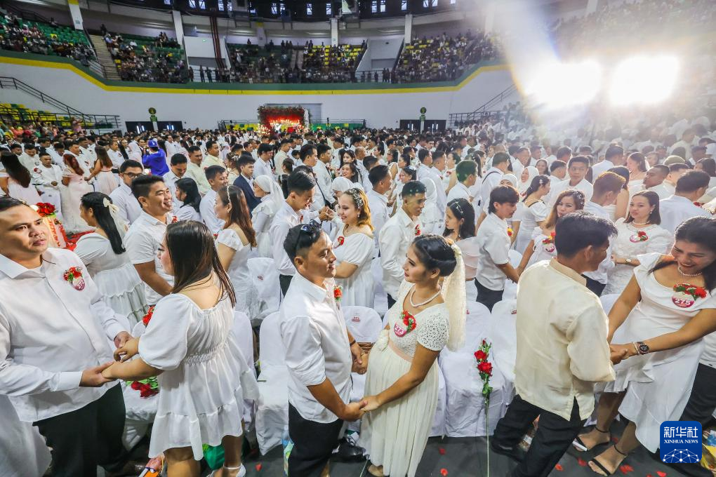 2月14日,新人在菲律宾甲米地省参加集体婚礼。