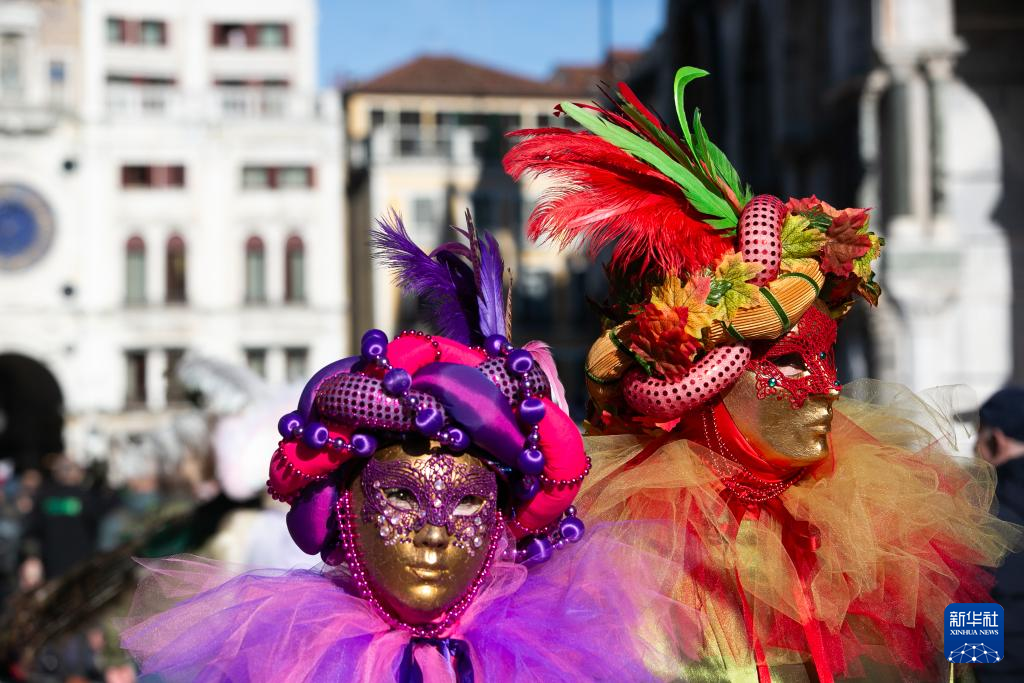 当日,意大利威尼斯狂欢节正式闭幕。人们身着华服在街头巡游留影,尽情享受节日的欢乐气氛。