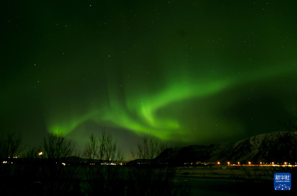 这是2月14日凌晨在冰岛南部小镇塞尔福斯拍摄的极光。