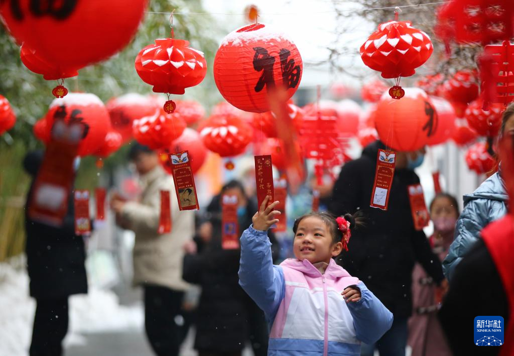 2月24日,一名小朋友在吉林省长春市图书馆举办的元宵佳节灯谜会上猜灯谜。