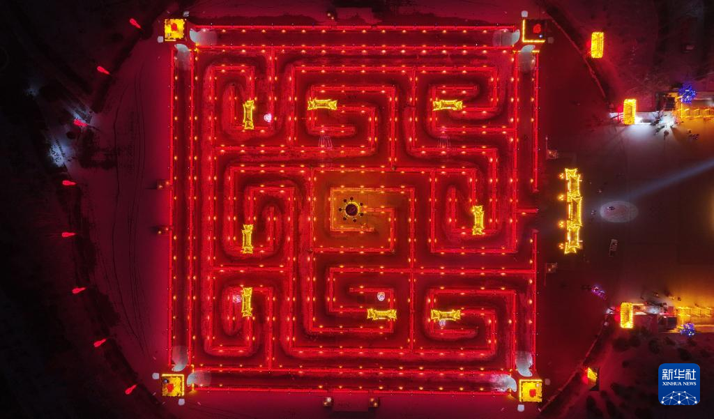 这是2月23日在盐池县拍摄的黄河九曲龙门阵(无人机照片)。元宵节期间,宁夏吴忠市盐池县开展“龙门祈福游九曲”系列元宵节民俗文化活动,吸引众多百姓前来感受浓浓的元宵节气氛。
