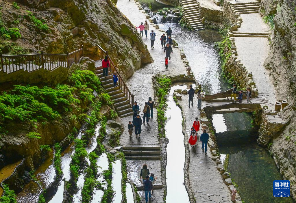4月6日,游客在重庆市酉阳土家族苗族自治县桃花源景区内游玩。