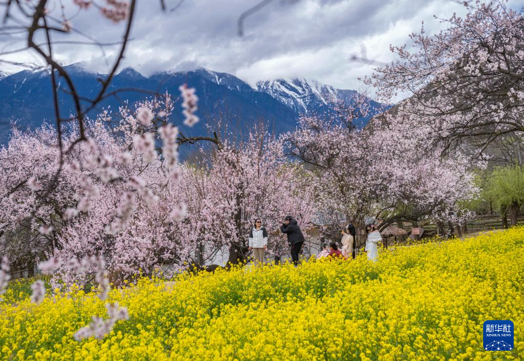 3月31日,游客在林芝市巴宜区嘎拉村拍照留念。