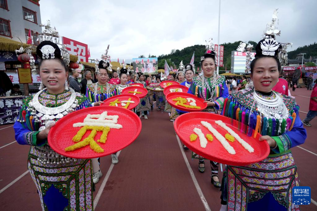 5月4日,贵州省黔东南苗族侗族自治州榕江县“村超”球场,一支拉拉队带着美食入场。