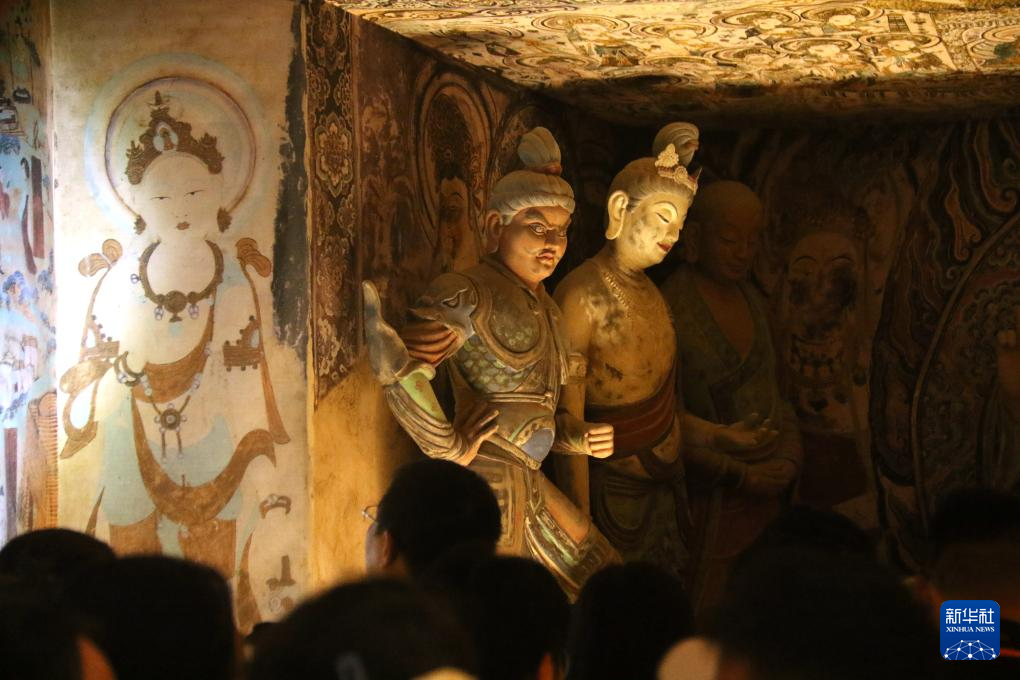 5月4日,游客在甘肃省敦煌市博物馆参观。