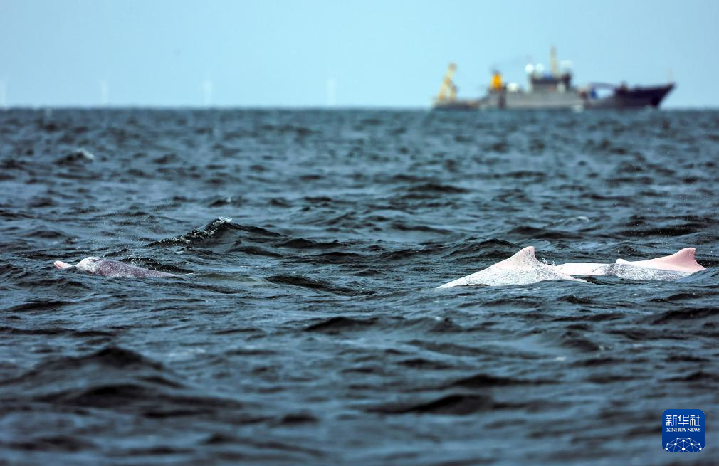 5月16日,中华白海豚在广东湛江雷州湾海域畅游。中华白海豚是国家一级保护野生动物,被誉为“海上大熊猫”,对海洋水质环境十分敏感,被视为衡量海洋生态环境的活指标。