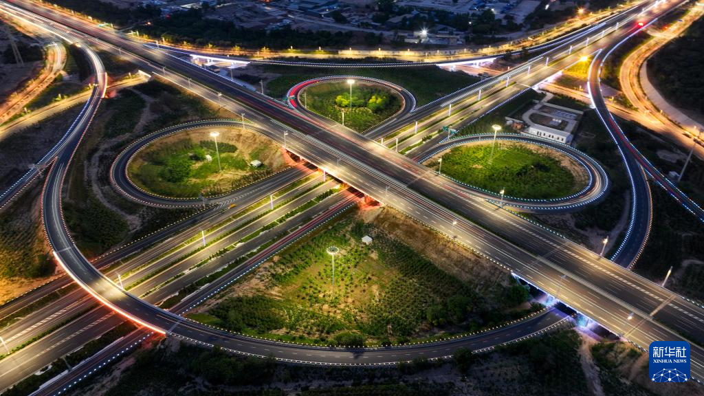 这是5月14日拍摄的河北省石家庄市北三环与复兴大街交汇的南高营立交桥夜景(无人机照片)。