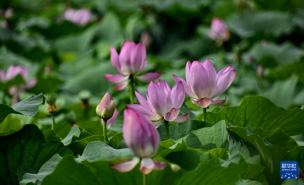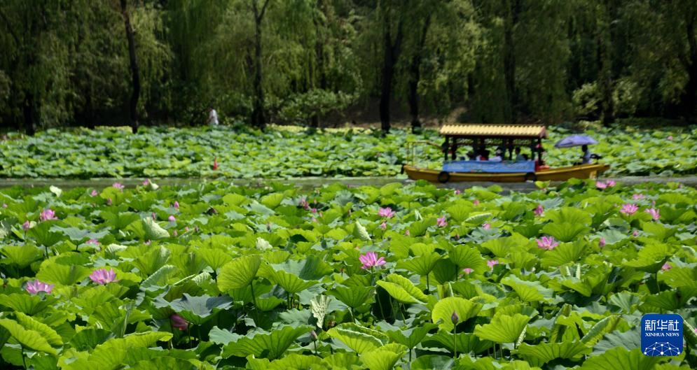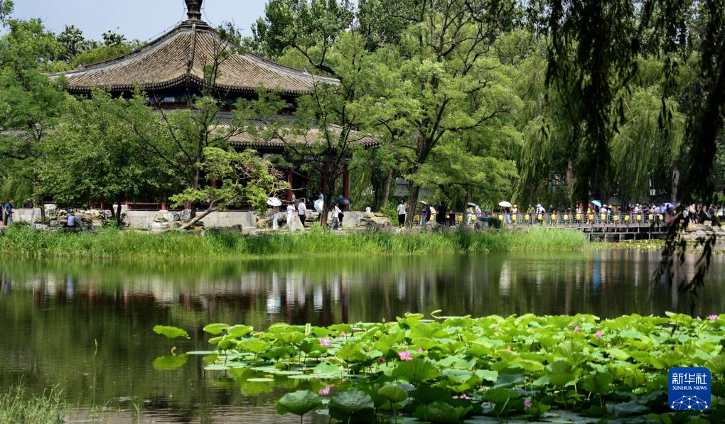 盛夏时节,北京市圆明园遗址公园内二百多个品种的一千余亩荷花盛开,吸引大批游客和市民前来赏荷避暑。