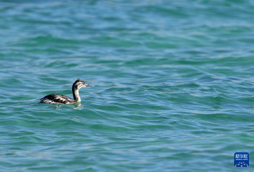 错鄂湖里的凤头鸊鷉(8月25日摄)。