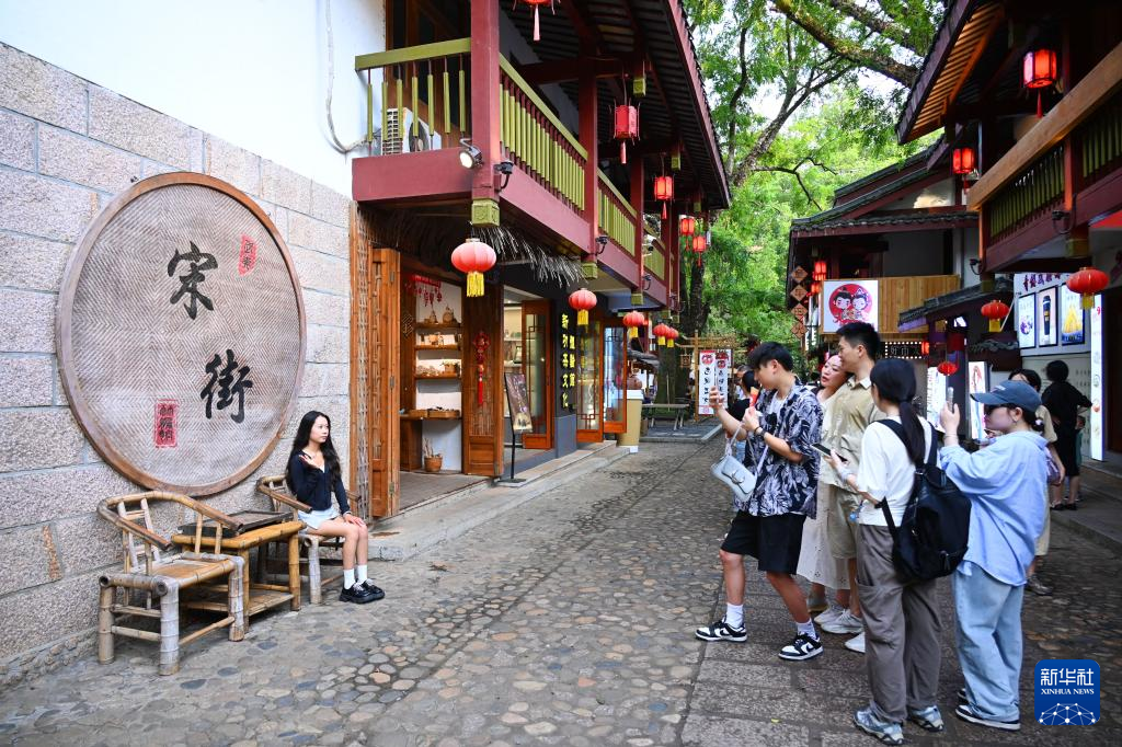 9月16日,游客在武夷山国家公园宋街景区拍照打卡。