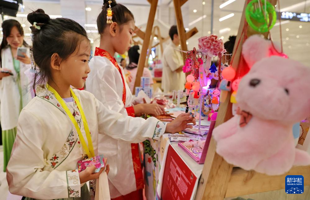 9月16日晚,位于河北省秦皇岛市的秦皇岛博物馆,小朋友体验非遗市集。