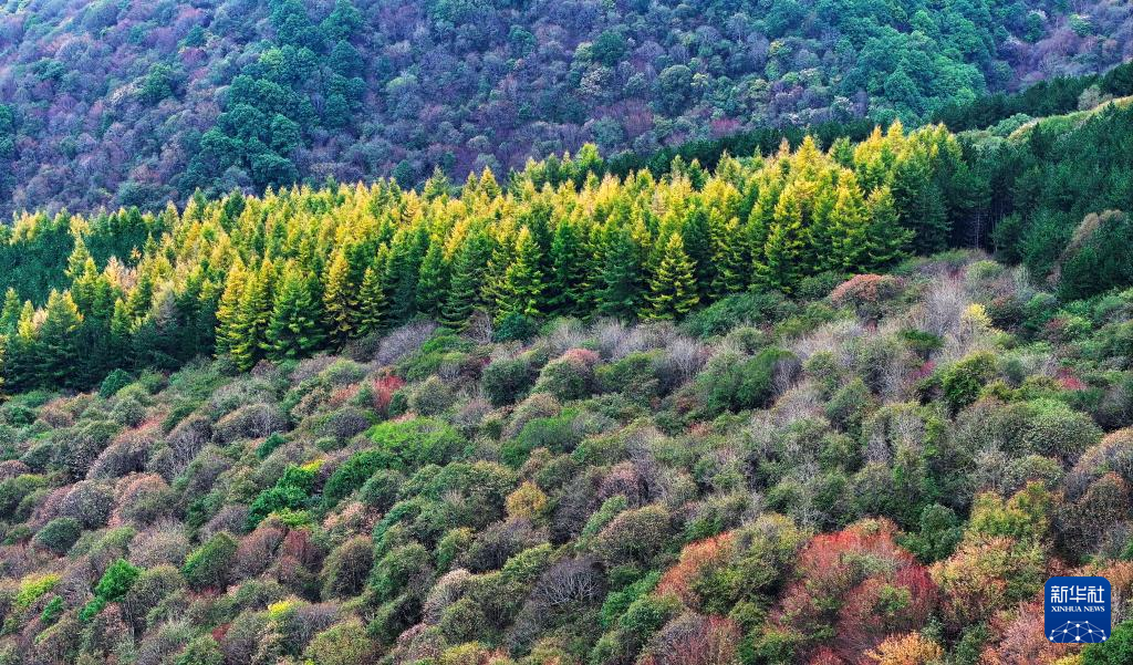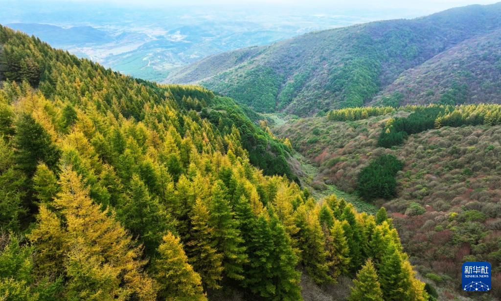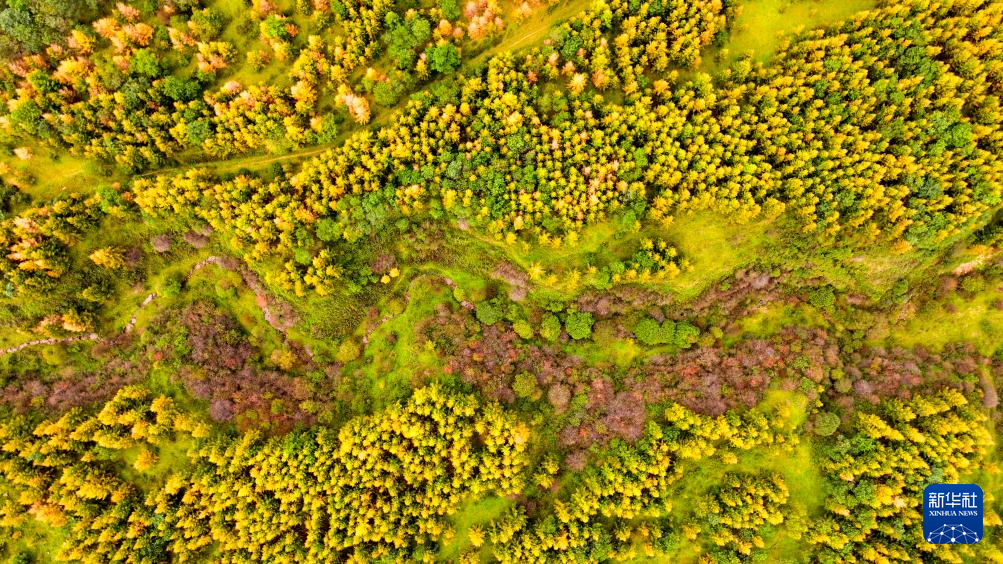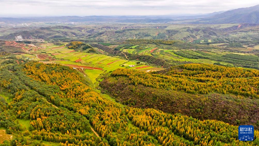 10月4日在宁夏固原市泾源县境内拍摄的六盘山秋色(无人机照片)。