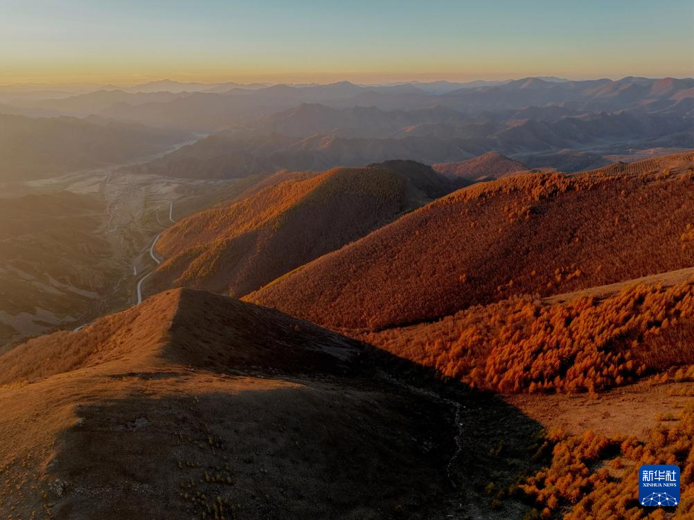 河北省承德市丰宁满族自治县坝上地区的清晨,阳光给山川河湖披上斑斓秋色,风光怡人。