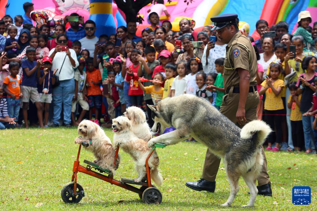 10月6日,斯里兰卡警方的警犬在首都科伦坡的一座公园面向公众表演。