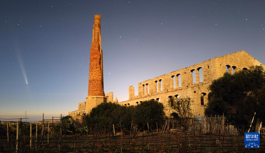 10月14日,在意大利西西里大区拉古萨省,紫金山-阿特拉斯彗星从一处历史遗址的上空划过。