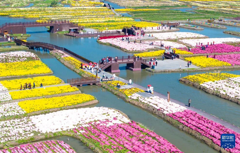 10月29日,游客在江苏省兴化市千垛景区赏菊游玩(无人机照片)。
