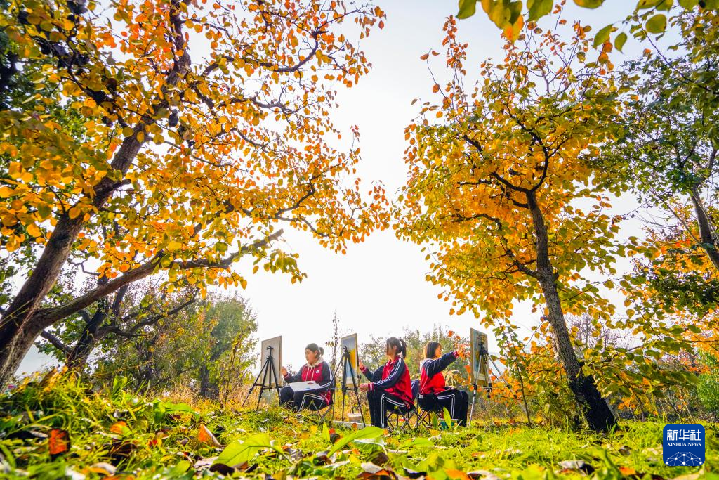 10月29日,河北省遵化市高级中学的学生在娘娘庄镇进行采风创作。