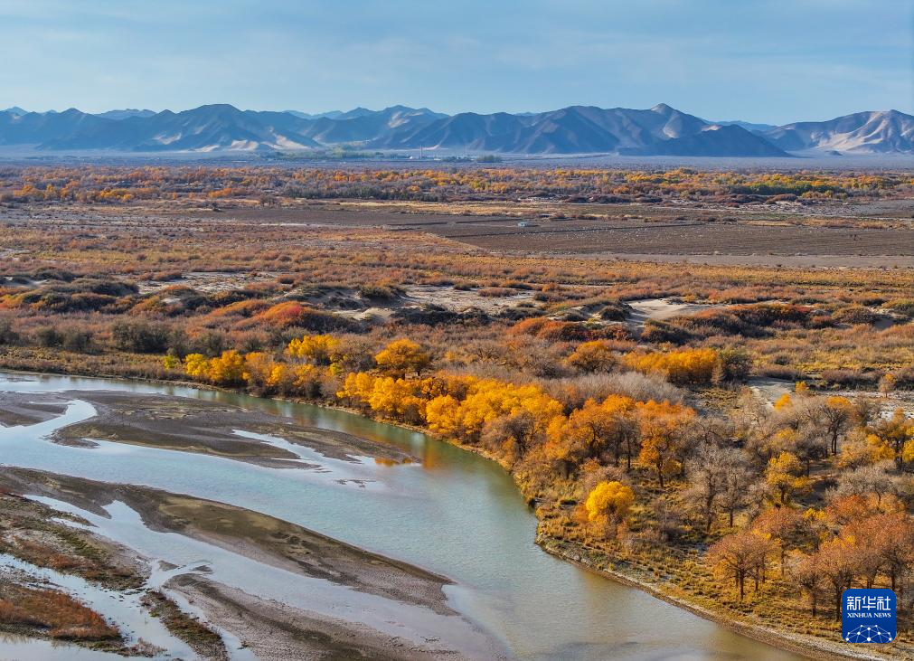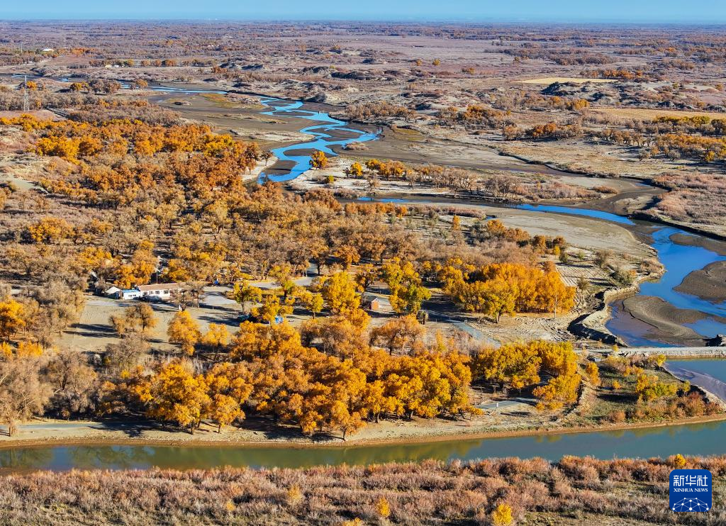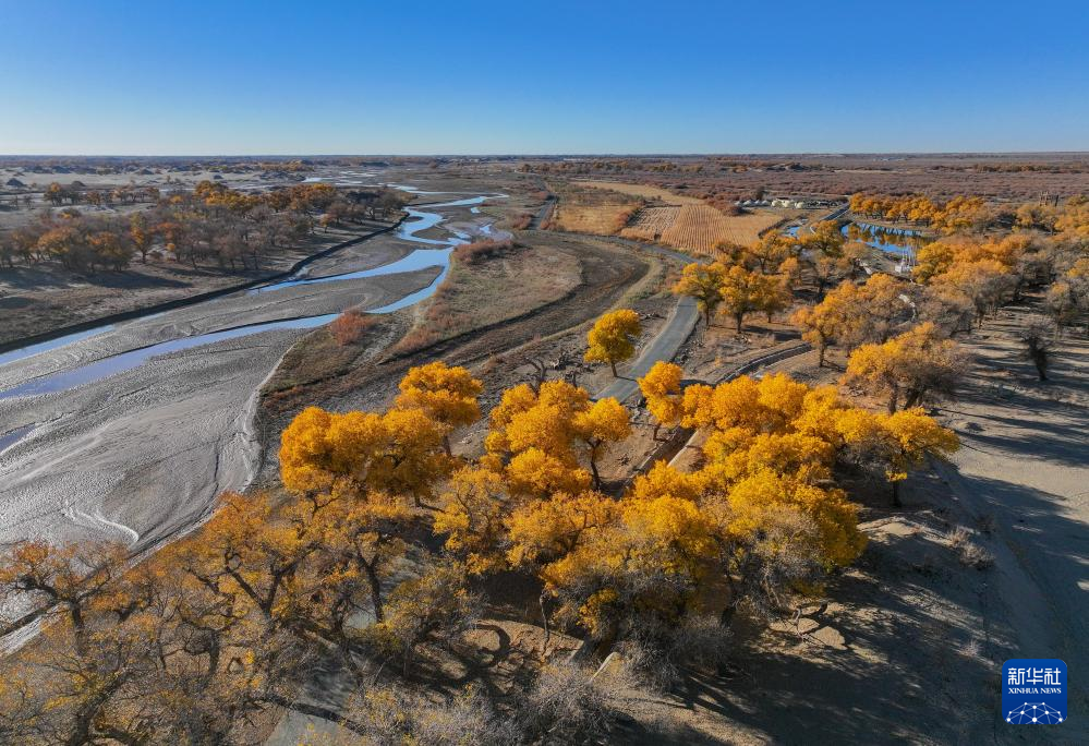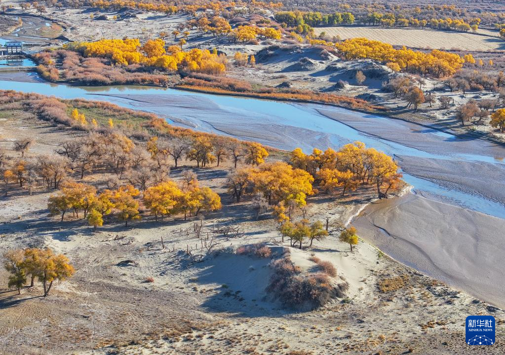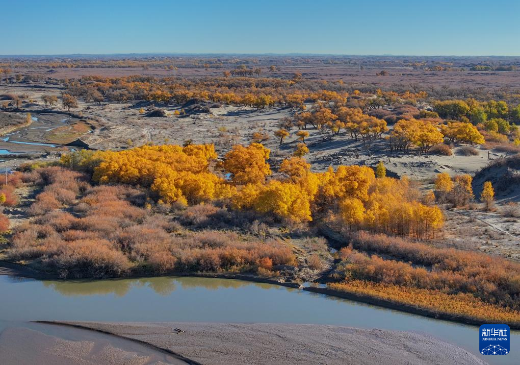 这是10月27日在额济纳旗黑河沿岸拍摄的野胡杨(无人机照片)。