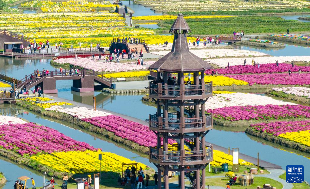10月29日,游客在江苏省兴化市千垛景区赏菊游玩(无人机照片)。