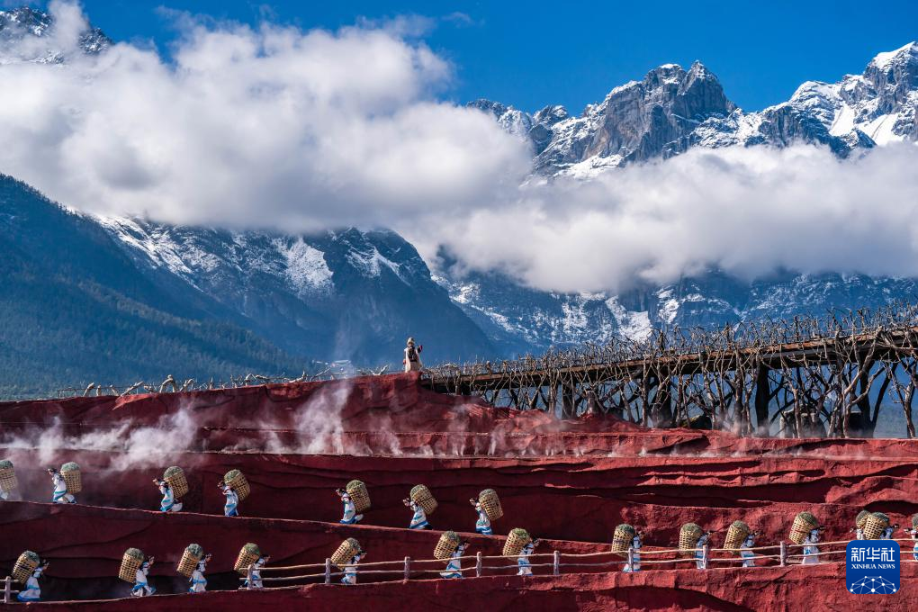 11月9日在云南省丽江市玉龙雪山景区拍摄的《印象丽江》演出现场。