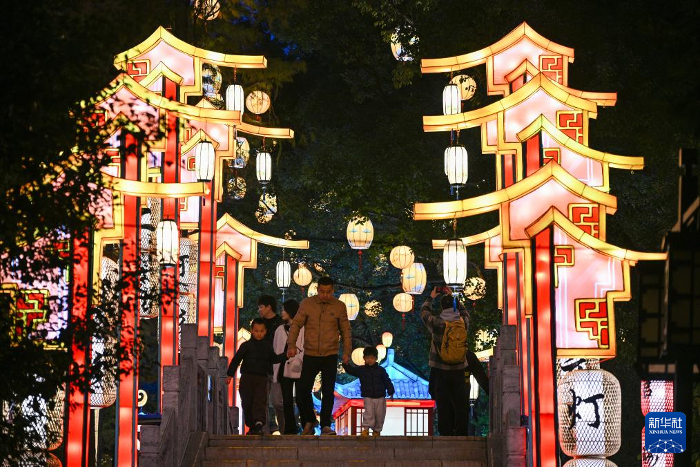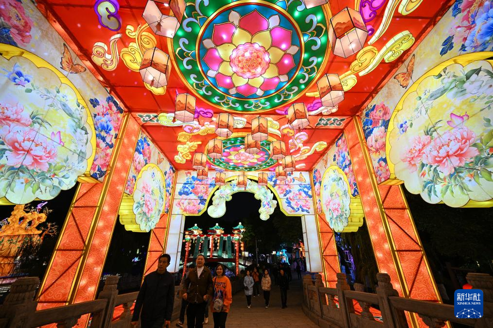 当日,《上元灯彩图》非遗艺术展在南京白鹭洲公园正式亮灯,艺术展将灯彩主题与《上元灯彩图》的文化内涵进行深度融合,设置瑞兽闹春、鱼跃福运、鸟语花香、上元灯市、蝶舞鹿悦、十里灯街六大主题展区,为游客带来全新的赏灯体验。