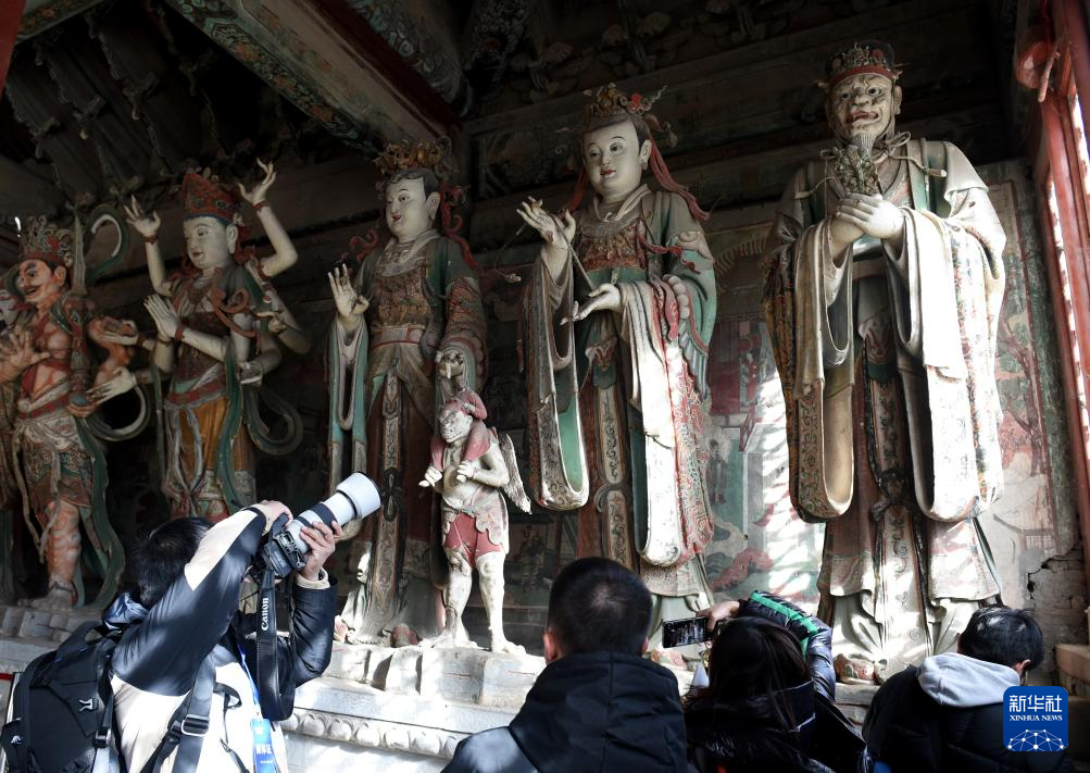 12月13日,几名记者在大慧寺大悲宝殿内拍摄。