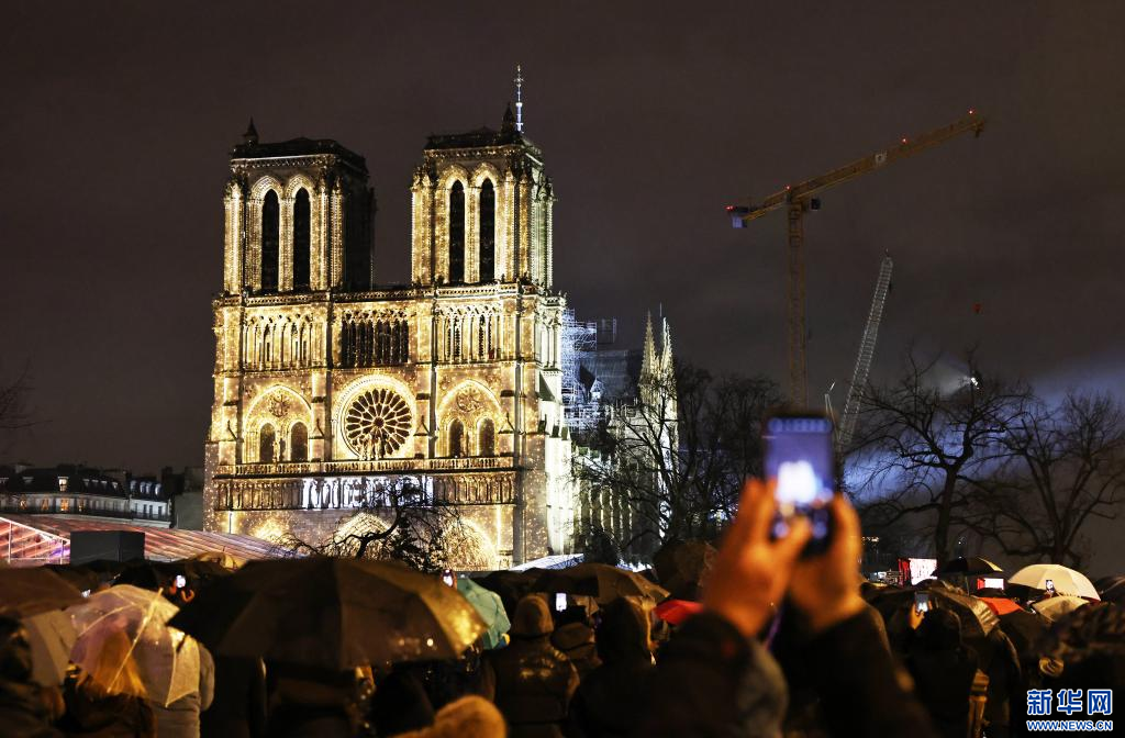 法国7日晚在位于塞纳河畔的巴黎圣母院举行仪式,庆祝2019年失火的巴黎圣母院经过5年修复后重新开放。