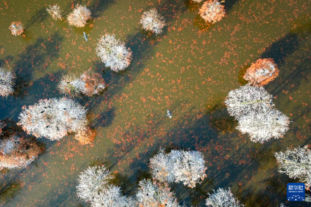 这是位于安徽省滁州市来安县的池杉湖国家湿地公园(12月20日摄,无人机照片)。