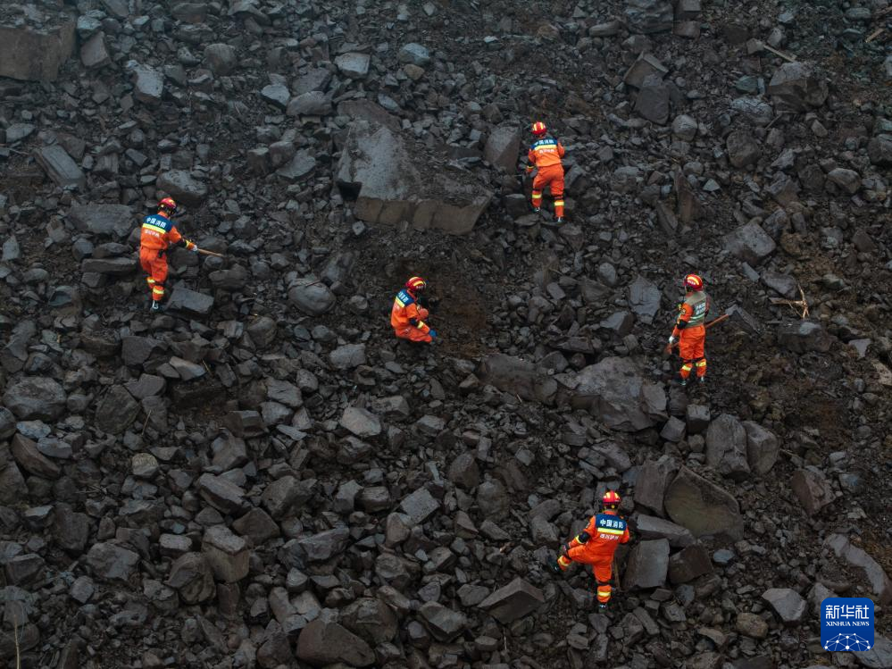 2月9日,消防员在搜救被困人员(无人机照片)。