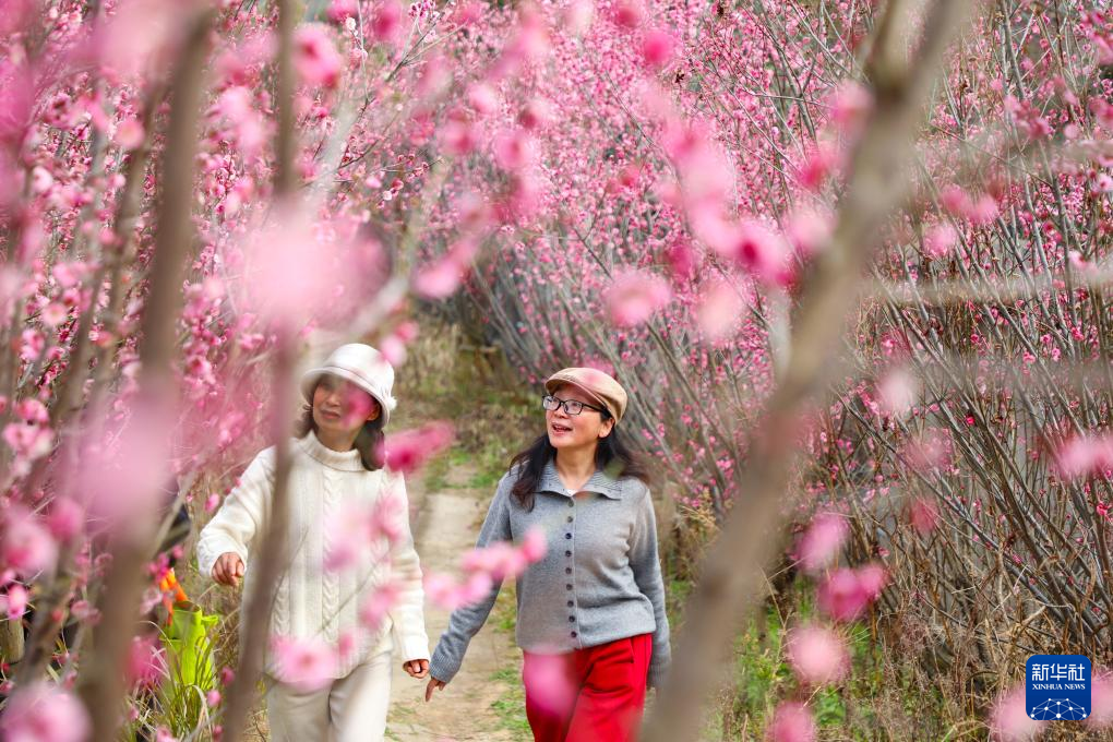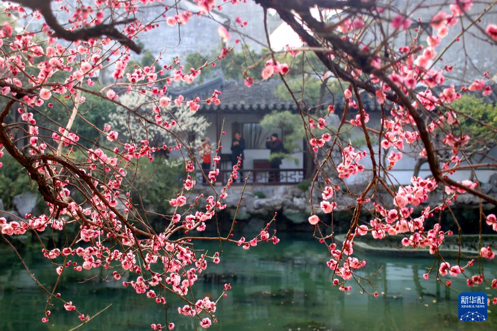 2月26日,游客在江苏苏州赏花游览。