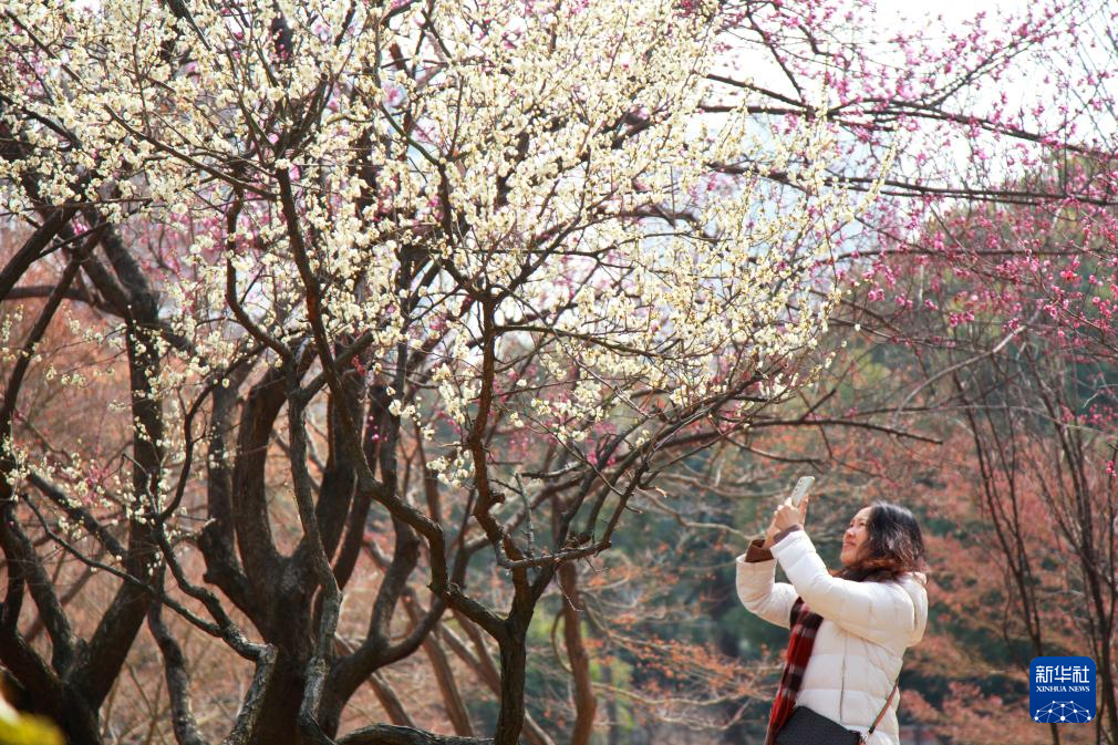 2月26日,游人在江苏南京古林公园拍摄梅花。