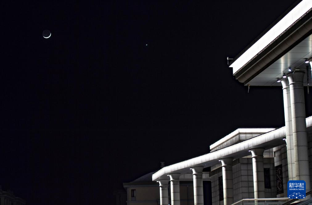 3月2日在黑龙江省绥化市拍摄的金星伴月。