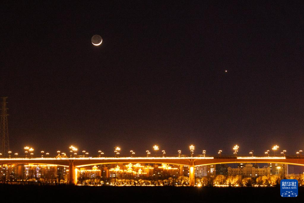 3月2日在黑龙江省哈尔滨市拍摄的金星伴月。