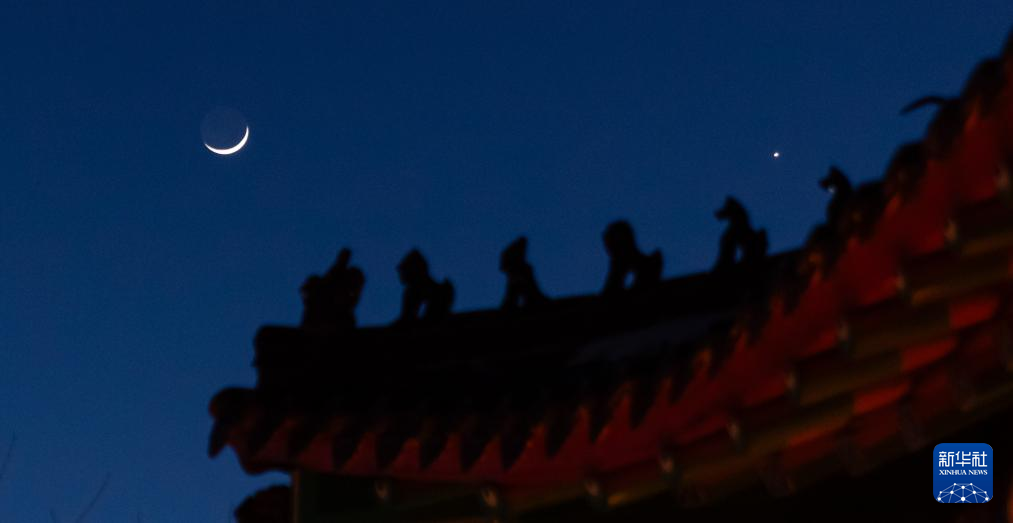 当日,天宇上演金星伴月,这是今年金星以长庚星姿态最后一次近距离与蛾眉月“相会”。