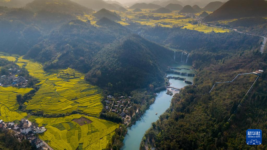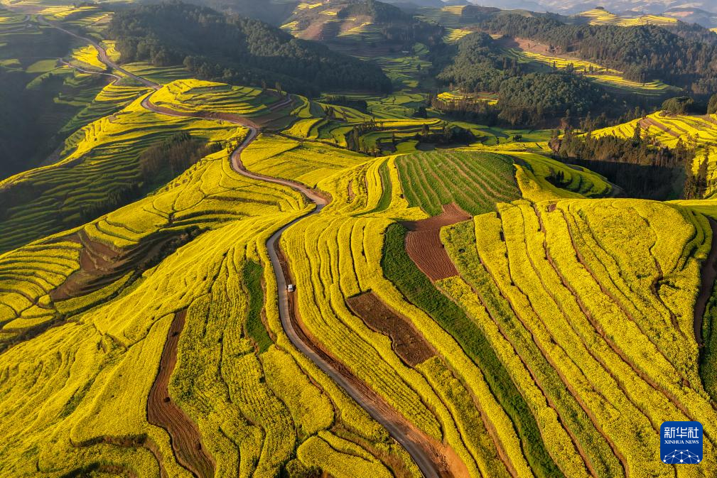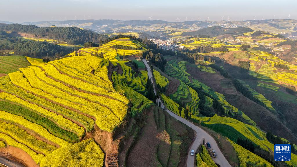 近期,云南省曲靖市罗平县近百万亩油菜花相继绽放,花海与山峦、村寨勾勒出一幅田园春景图,吸引国内外游客纷至沓来,感受春天的气息。