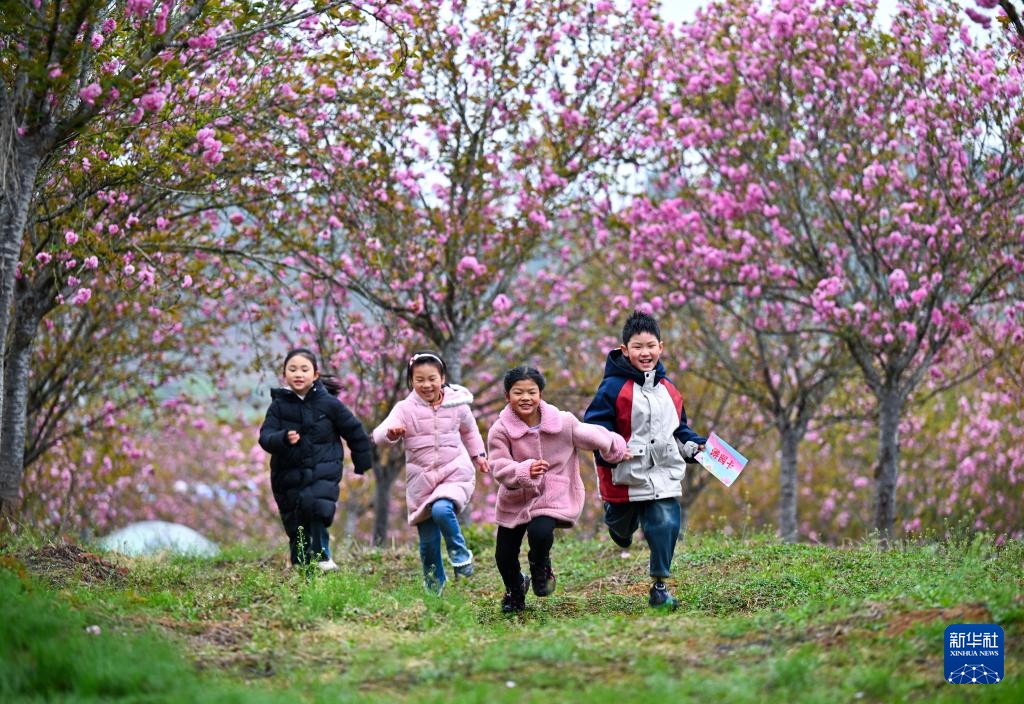 3月29日,在四川省眉山市仁寿县方家镇曲江社区花卉基地,小朋友在玩耍。