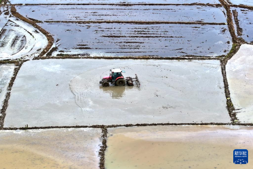 当日是谷雨节气,多地农民抢抓农时,开展农事活动,田间地头一片忙碌景象。