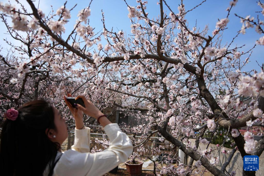 近日,山东省新泰市青云街道外峪村的2600多亩珍珠油杏陆续开花,吸引大量游客前来赏花游览。