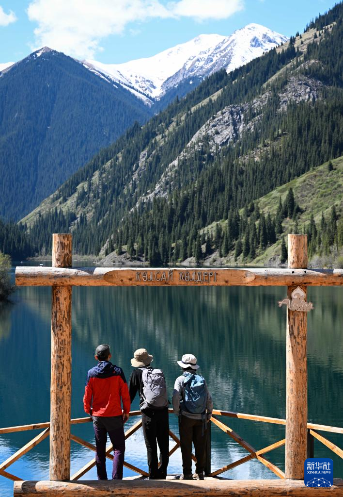 5月3日,人们在哈萨克斯坦阿拉木图州的科尔赛湖国家公园游览。
