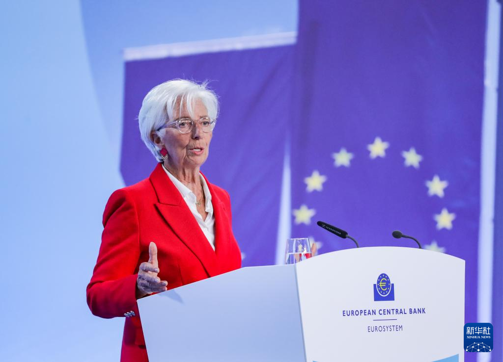 6月5日,欧洲中央银行行长拉加德出席在德国法兰克福欧洲央行总部举行的新闻发布会。
