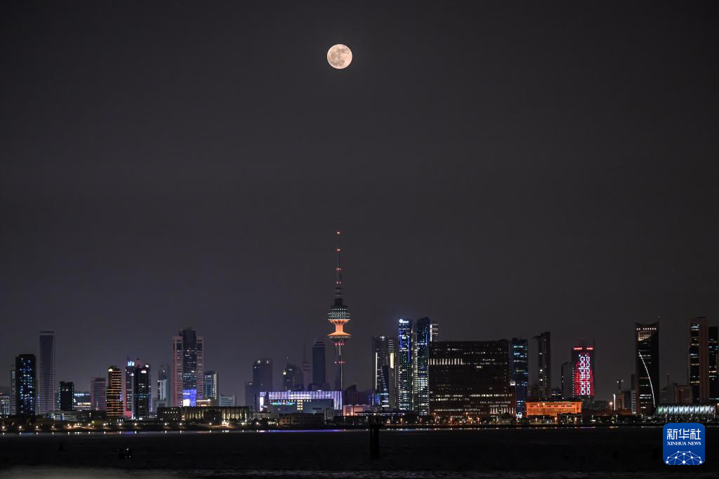 这是6月11日在科威特首都科威特城拍摄的城市上空的满月。