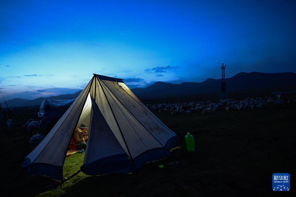 6月25日夜间,牧民先巴尖措在帐篷内休息。