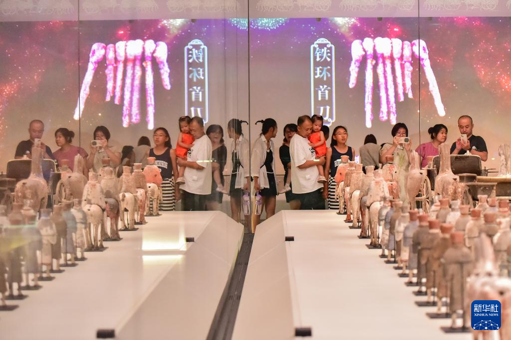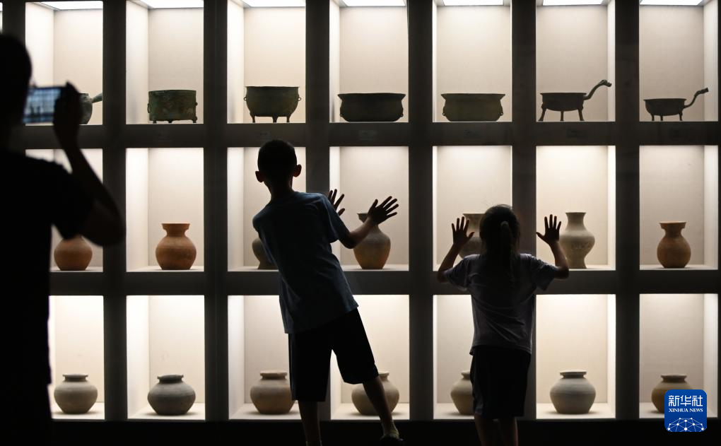 8月2日,家长带着小朋友在山东省青州博物馆参观。