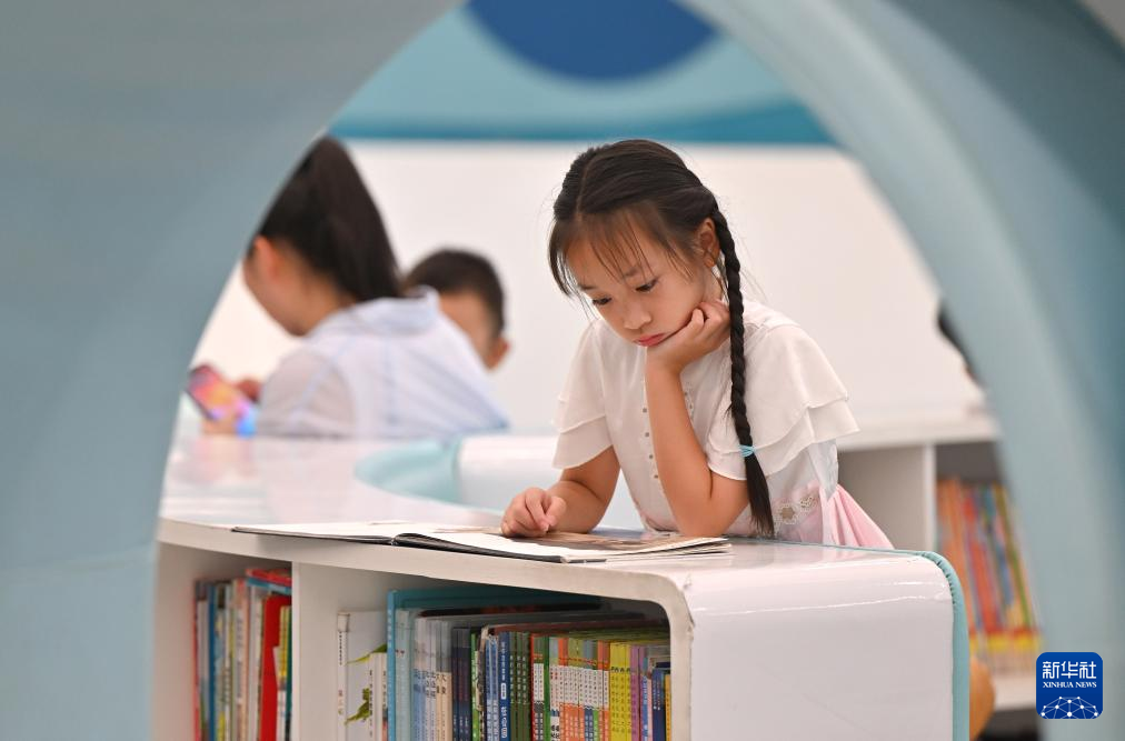 8月3日,小朋友在位于海口市的海南省图书馆读书。