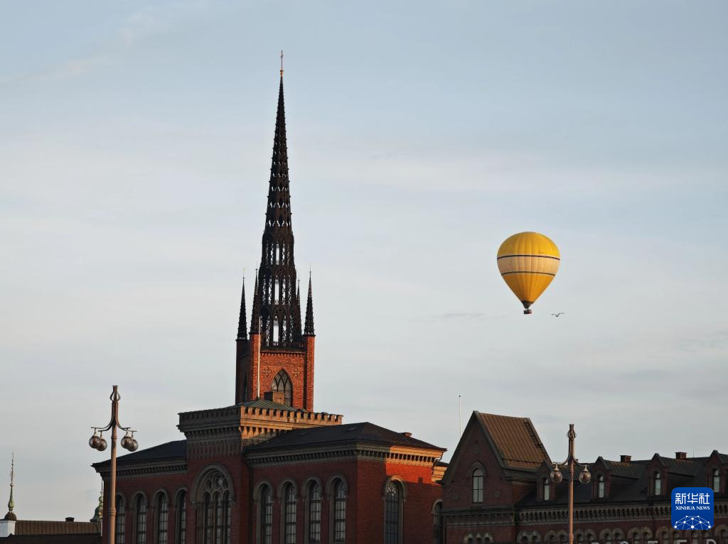 7月27日,热气球从瑞典斯德哥尔摩上空飞过(手机照片)。