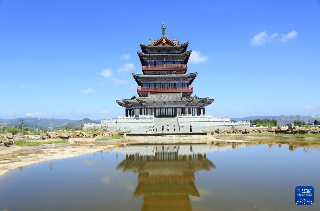 8月31日,游客在河南省洛阳市汝阳县瑞云山森林公园瑞云阁观光。
