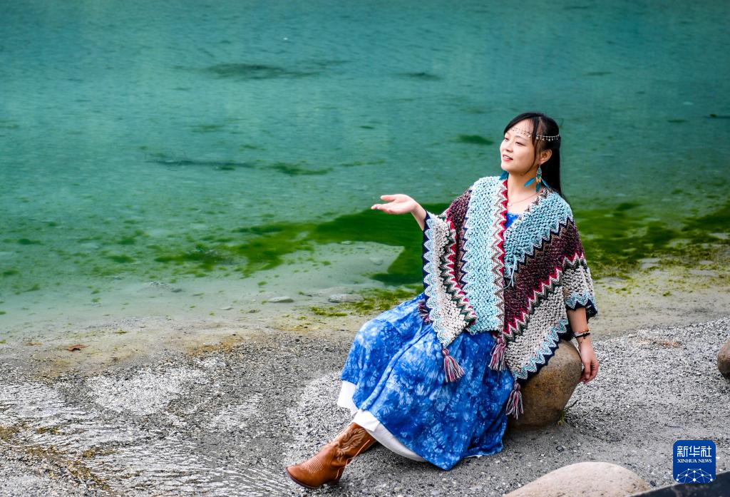 9月8日,游客在蓝月谷拍照留念。