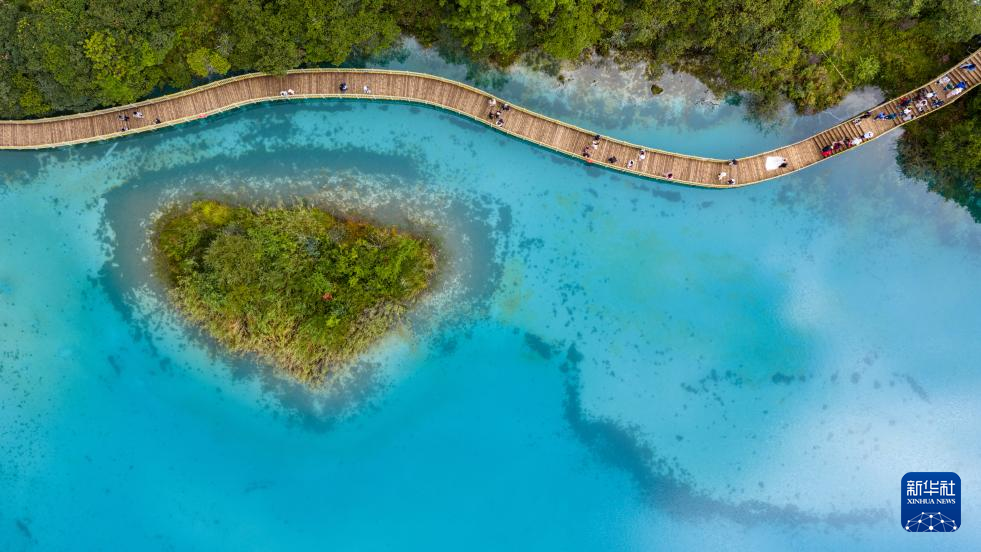 9月8日,游客在蓝月谷游玩(无人机照片)。